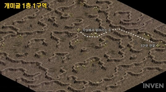 1층 4구역 본격적으로 깊숙이 들어가는 길목입니다. 여기서부터는 병정 개미의 출현 빈도가 높아지며, 일반 개미보다 높은 아데나 수익을 기대할 수 있습니다.